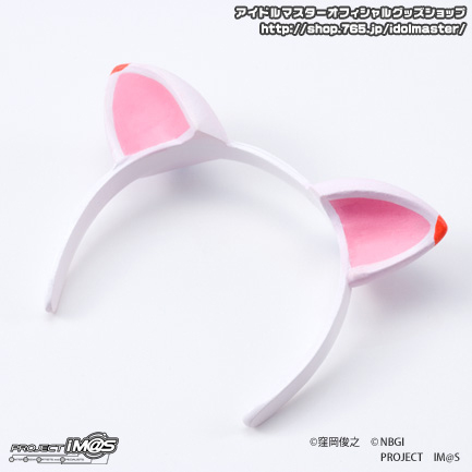 | このリミテッドドールの製造を手がけていただいたメガハウス様では、顔の造形を美希の大ファンを自認する原型師様に依頼。キラキラ輝く衣装は素材の布から吟味し、細かいアクセサリーの再現にまでこだわりました。更に、ボーナスパーツとして、頭につけられるネコミミと、印象的な指差し手をセット。 |