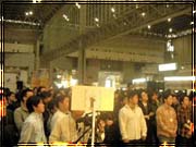 で、まあ、しばらくは同じような混雑が続くわけですが、3時前にまたまたステージ前に激しい行列が!!これは突如、宮本様がモニターの向うから貞子のように出現した!という訳ではなく、3:30のアイマスラストショーにむけて、投票用紙というものを配布するのが3時だったからです。