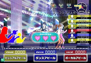 プロデューサーの応援をうけて、ボクたち、審査員にアピールします! すると、ボクたちがもってるイメージの量に応じて、応援してくれたジャンルに審査得点が入るんです。