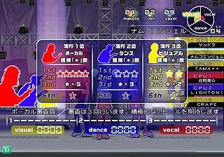 中間審査では、各ジャンルごとに、審査得点によって順位がつけられるのよ。 そのジャンルの得点が1位から3位までに入れば、評価☆(スター)がもらえるわ。ボーカル、ダンス、ビジュアル、ぜ~んぶの☆をゲットしちゃいたいところね♪