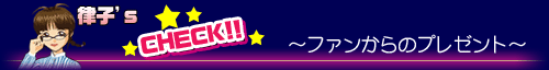 私たちが帰ったあと、プロデューサーは、ファンからのプレゼントをチェックしていってくださいね。さあて、今日は、どんなアクセサリーがもらえるかな? |