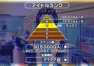 私たちのアイドルランクや、全国順位、次にランクUPするのに必要な、ファンの人数なんかがこれでわかるわ。 |