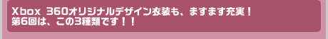 夏も近づくなんとやら。ダウンロードコンテンツ配信も第6弾!! Xbox 360版「アイドルマスター」のメインメニューの「765ショップ」から「アイマスカタログ第6号」をご覧の上、ご購入ください。